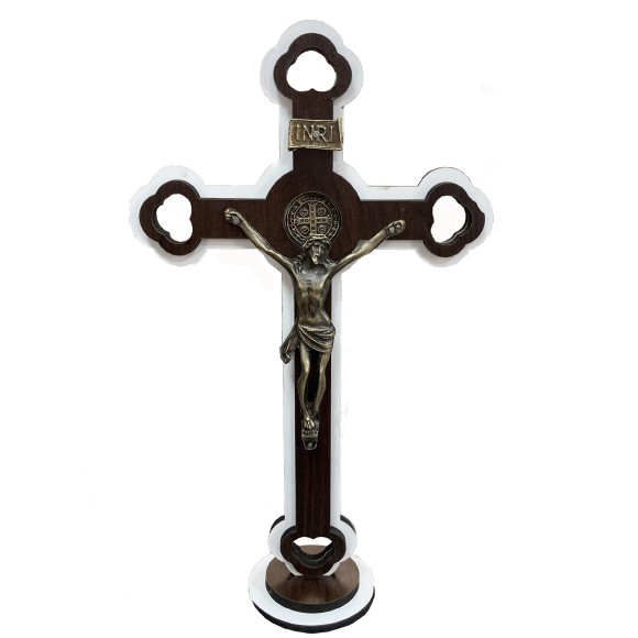 *Crucifixo de Mesa São Bento Madeira – 34,5x20cm.