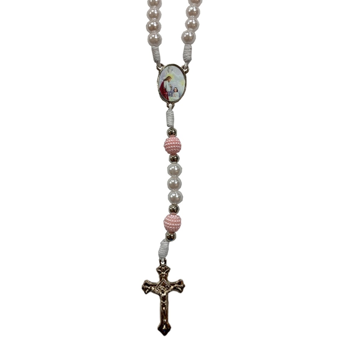 *Terço Primeira Eucaristia Pérola Branca - 38cm.