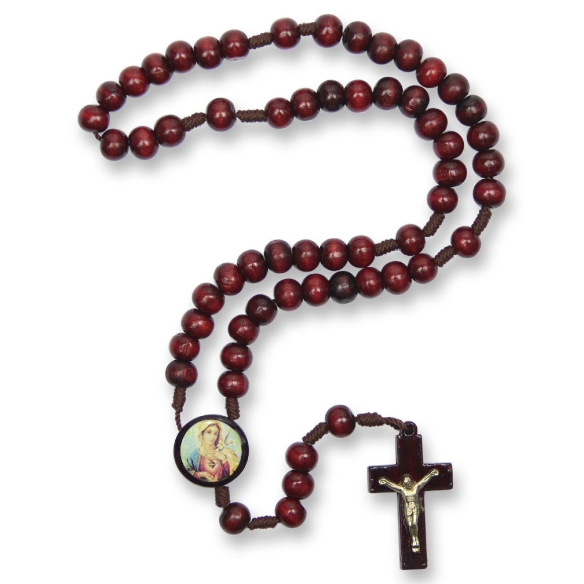 TE940181 - Terço Sagrado Coração de Maria Madeira - 37cm