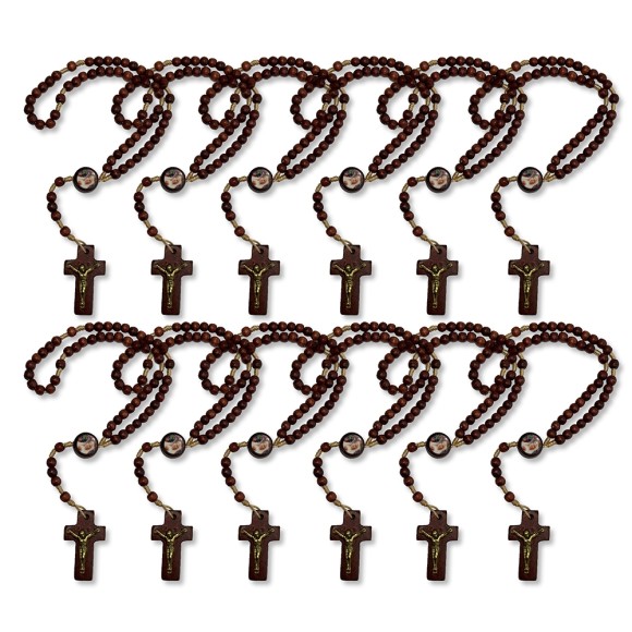 TE941004P12 - Terço N. Sra. De Fátima Madeira c/ 12un. - 24cm