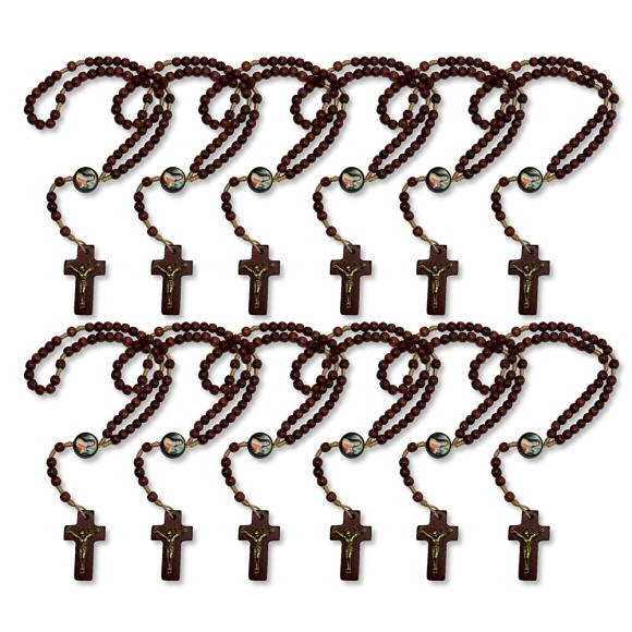 TE941022P12 - Terço Santa Terezinha das Rosas Madeira c/ 12un. - 24cm