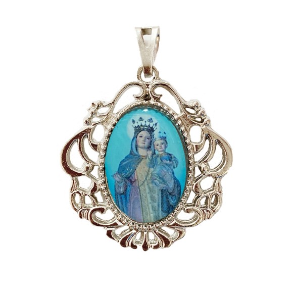 MD129110 - Medalha N. Sra. das Mercês Camafeu Níquel - 4,5x4cm