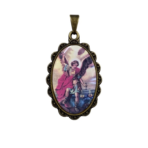 *Medalha São Miguel Arcanjo Rendada Ouro Velho - 4,2x2,5cm.