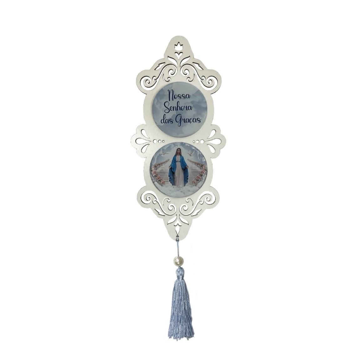 *Adorno N. Sra. Das Graças MDF Branco Resinado - 32x10,2cm.