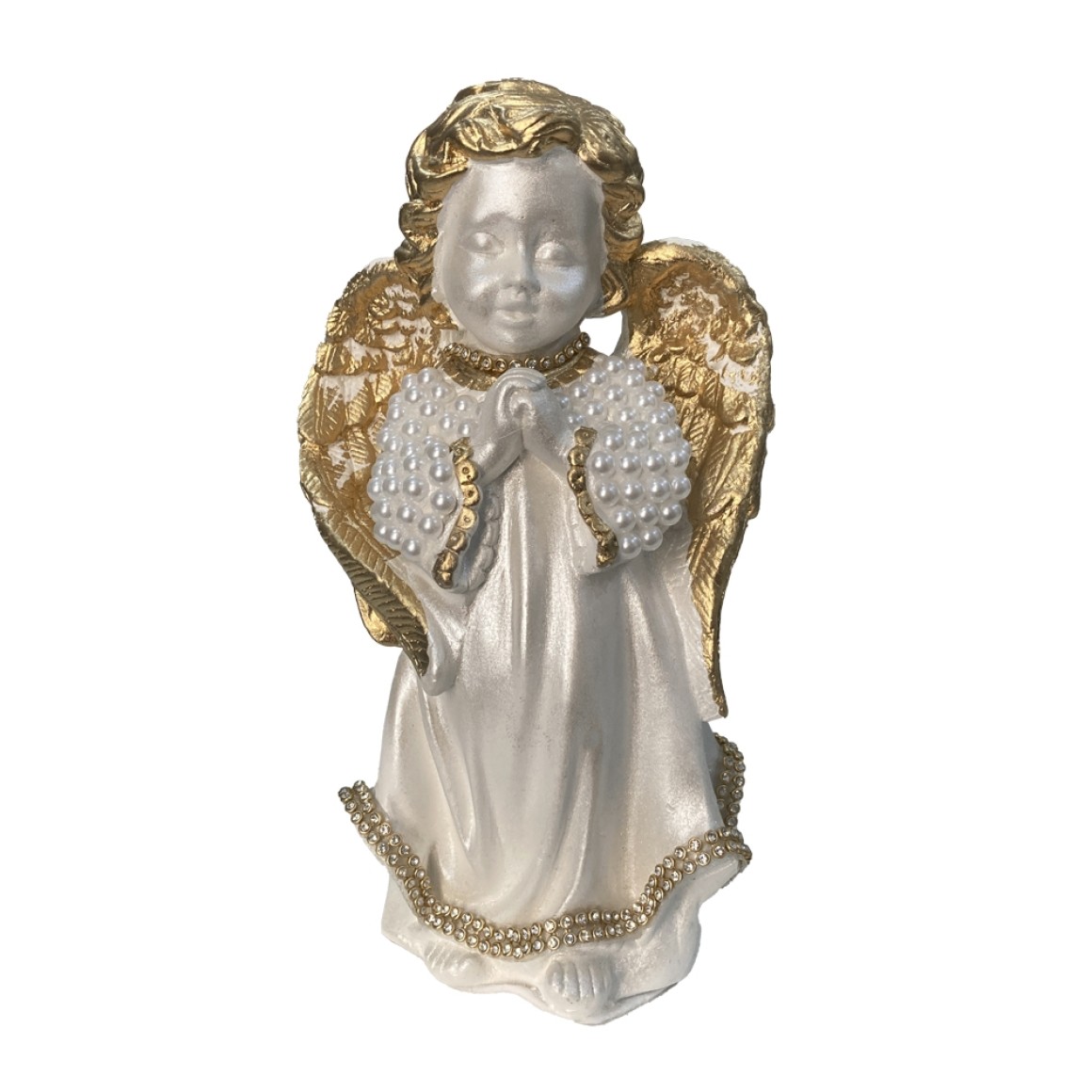 IM721050 - Imagem Anjo c/ Pérola Branca e Strass - 21x12cm