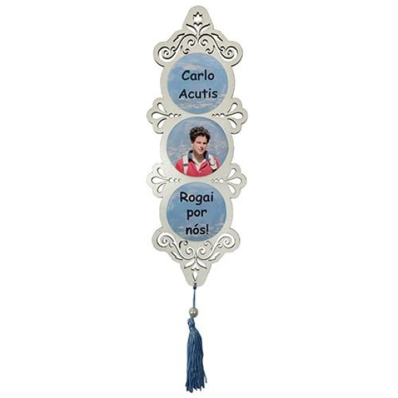 *Adorno São Carlo Acutis MDF Branco Resinado - 40x10,5cm.