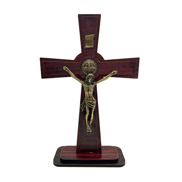 CU760482 - Crucifixo de Mesa São Bento Madeira - 29x19cm