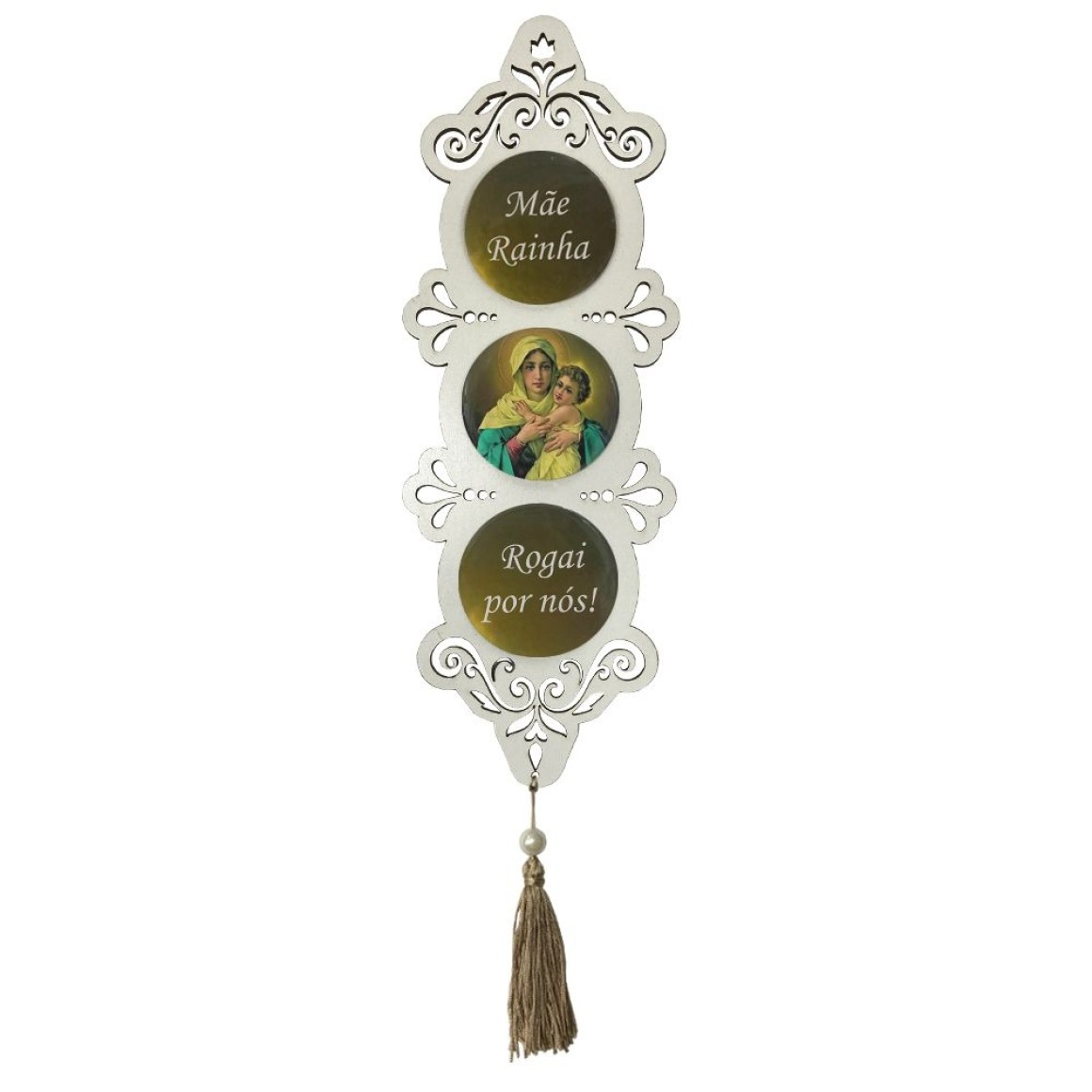 *Adorno Mãe Rainha MDF Branco Resinado - 40x10,5cm.
