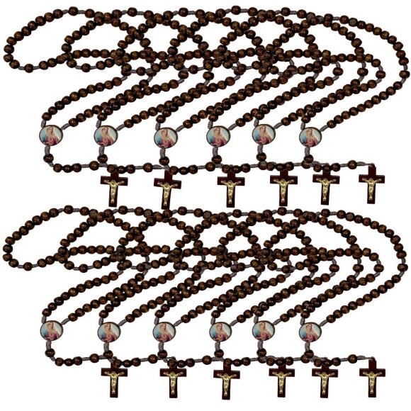 *Terço Sagrado Coração de Maria Madeira c/ 12un. - 37cm.