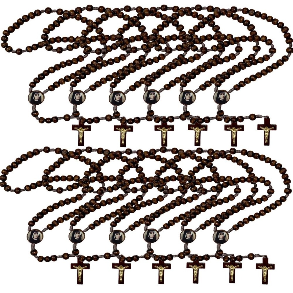 TE940250P12 - Terço Santa Faustina Madeira c/ 12un. - 37cm