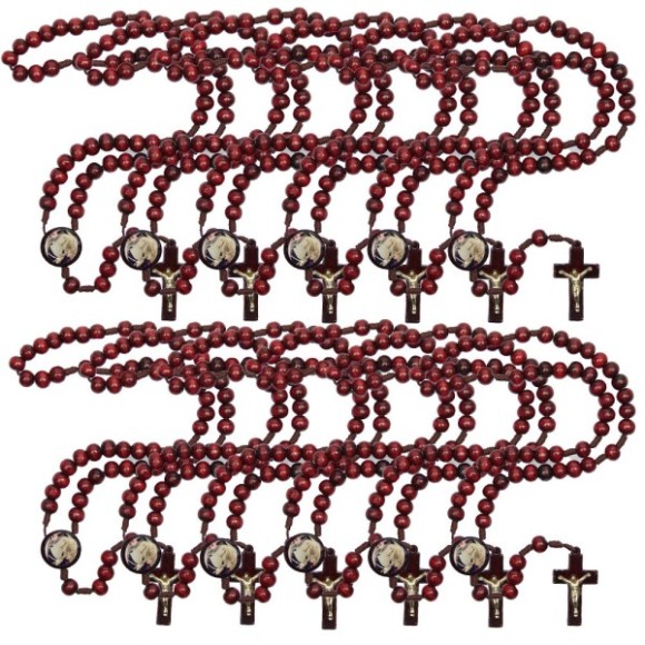 *Terço Santa Rita de Cássia Madeira c/ 12un. - 37cm.