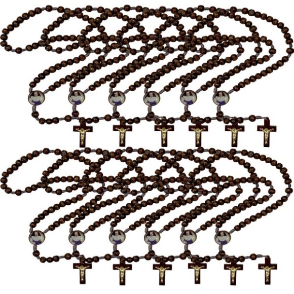 TE940330P12 - Terço Santa Dulce dos Pobres (Irmã Dulce) Madeira c/ 12un. - 37cm