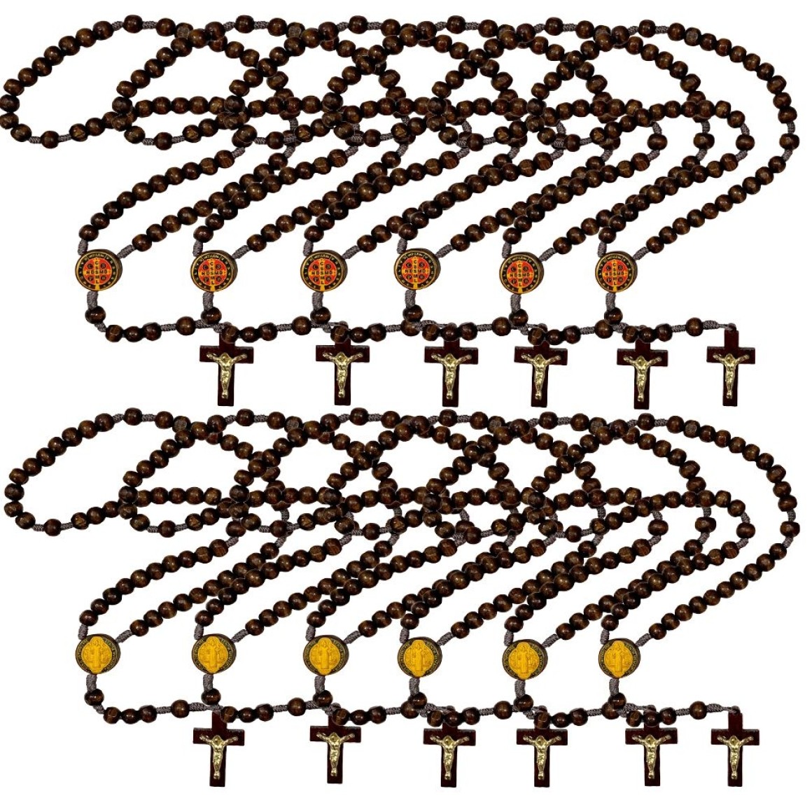 *Terço Medalha de São Bento Madeira c/ 12un. - 37cm.