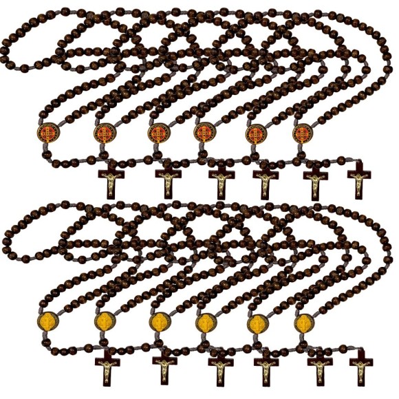 TE940433P12 - Terço Medalha de São Bento Madeira c/ 12un. - 37cm