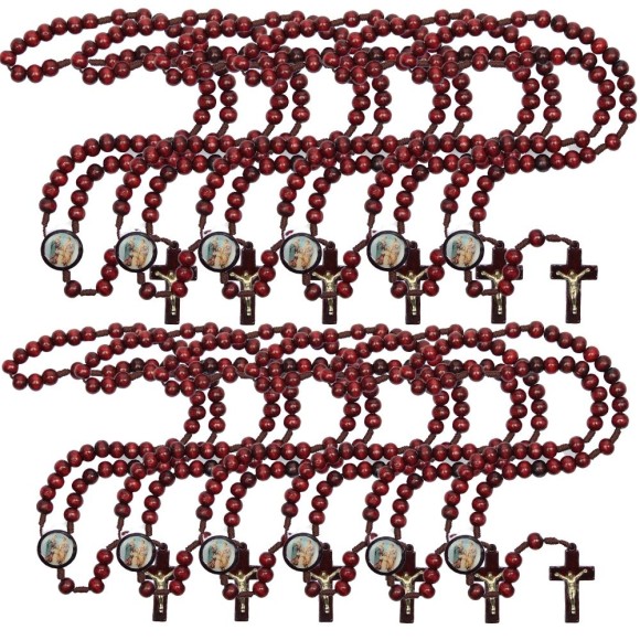 *Terço Sagrada Família Madeira c/ 12un. - 37cm.