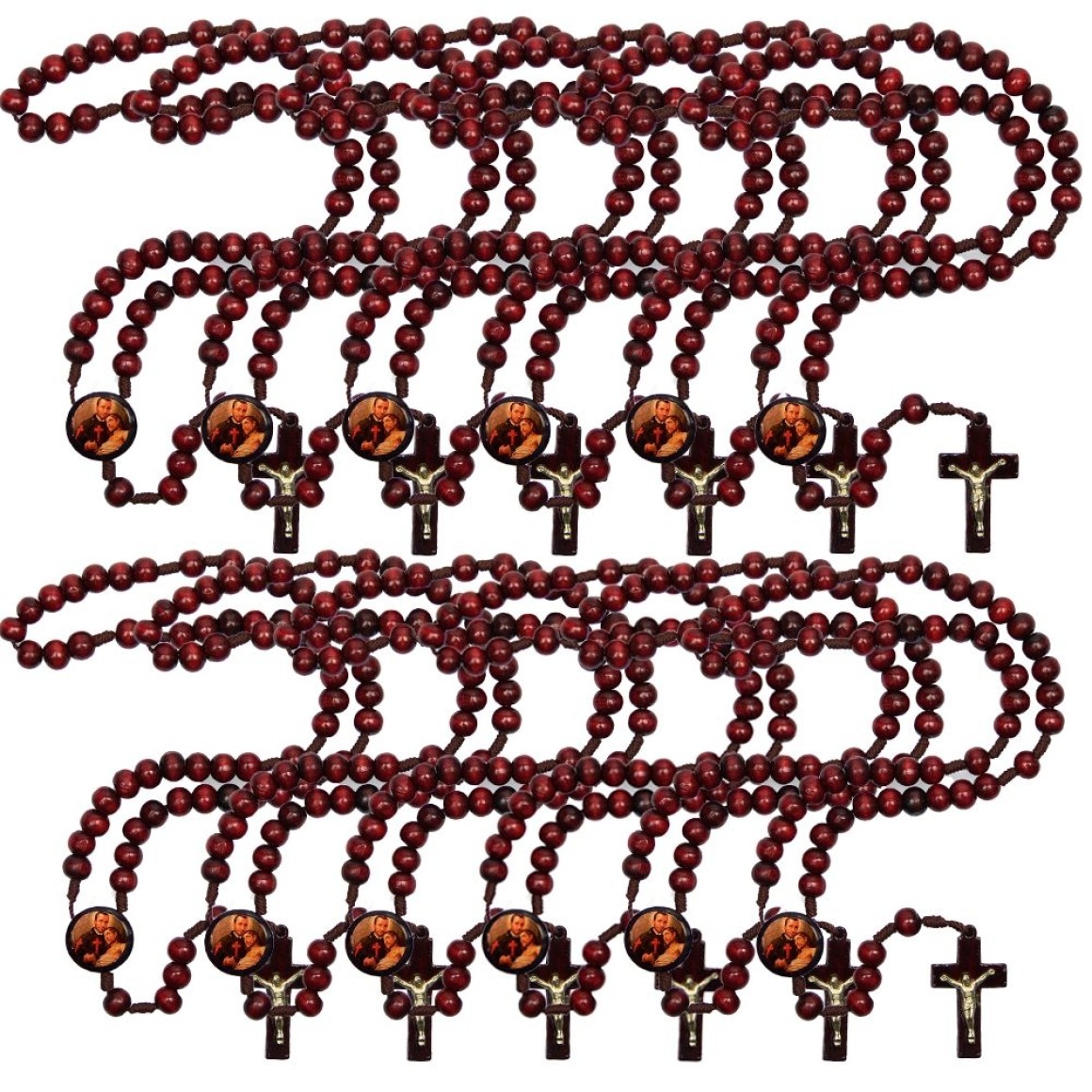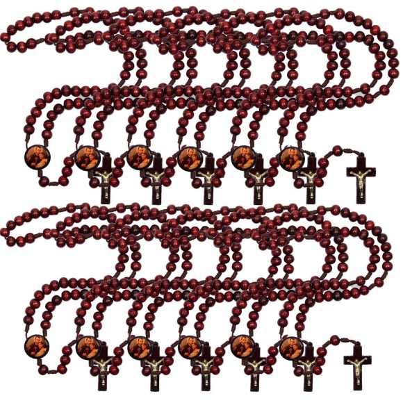TE940445P12 - Terço São Camilo Lellis Madeira c/ 12un. - 37cm