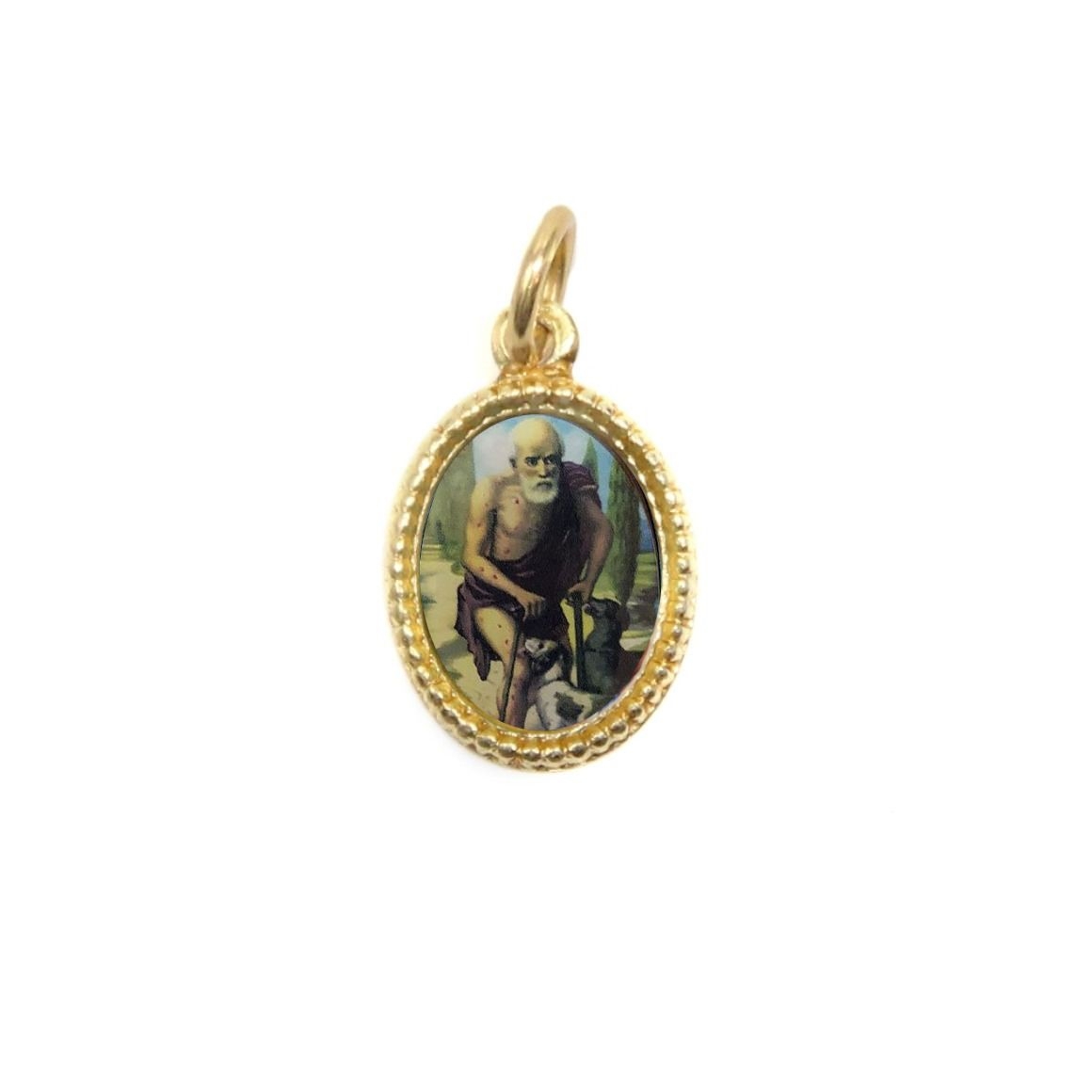 MD102272P20 - Medalha de Alumínio Oval Pequena Dourada c/ 20un. São Lazáro - 1,5x1cm