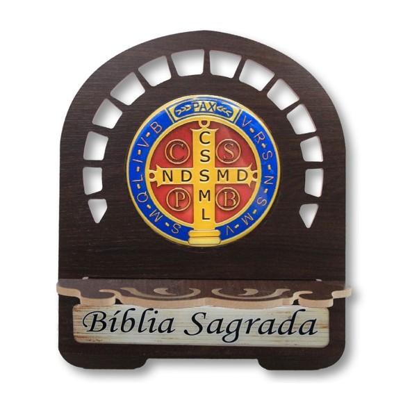PB811510 - Porta Bíblia Medalha de São Bento MDF Resinado - 26x21,5cm