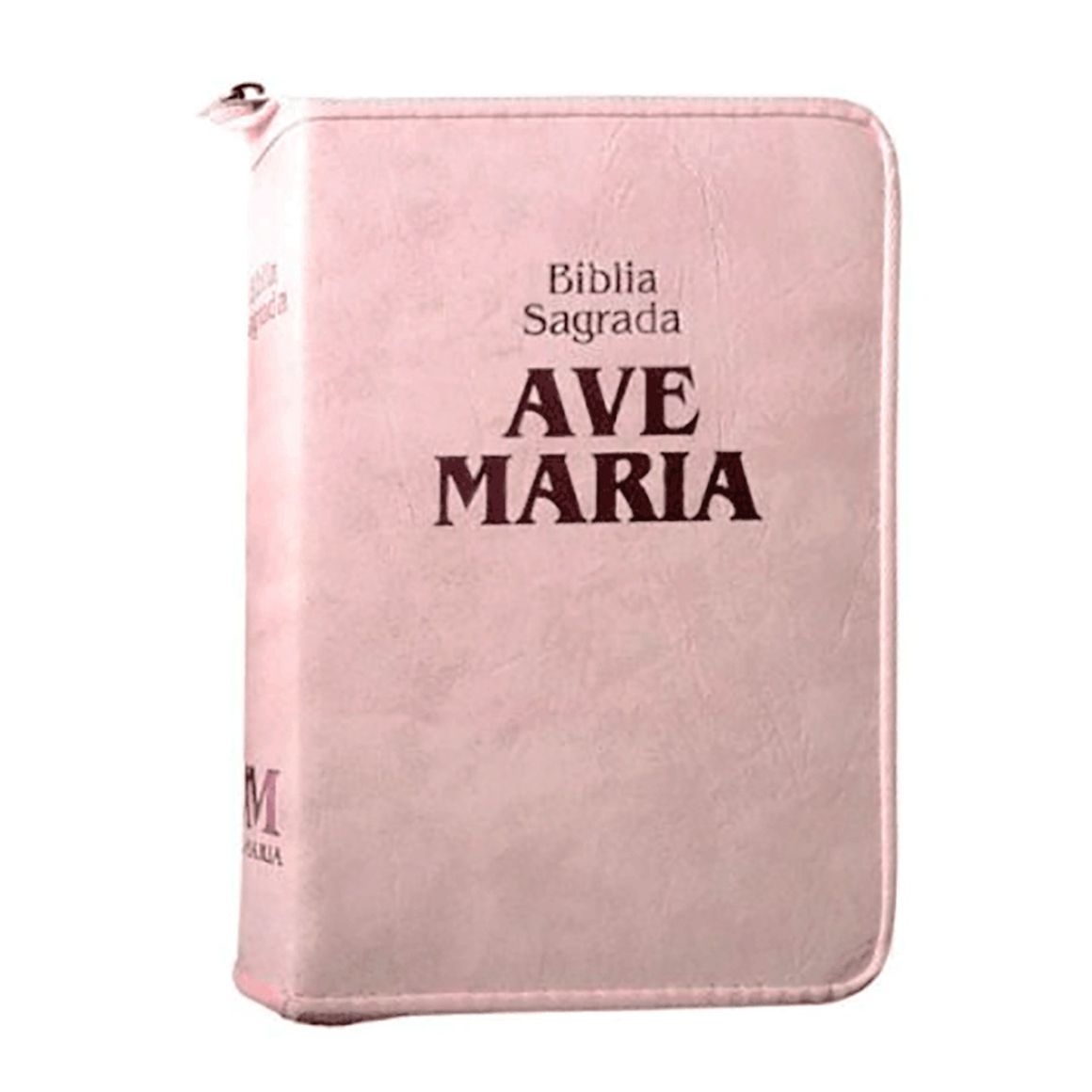 *Bíblia Sagrada Ave Maria Rosa c/ Ziper - 20x14cm.