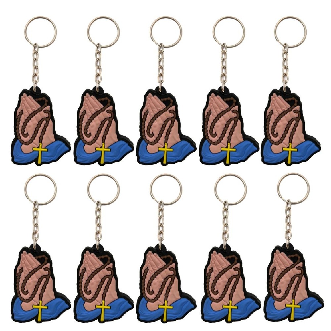 CH50860P10 - Chaveiro Mãos Rezando Emborrachado c/ 10un. - 11x4cm