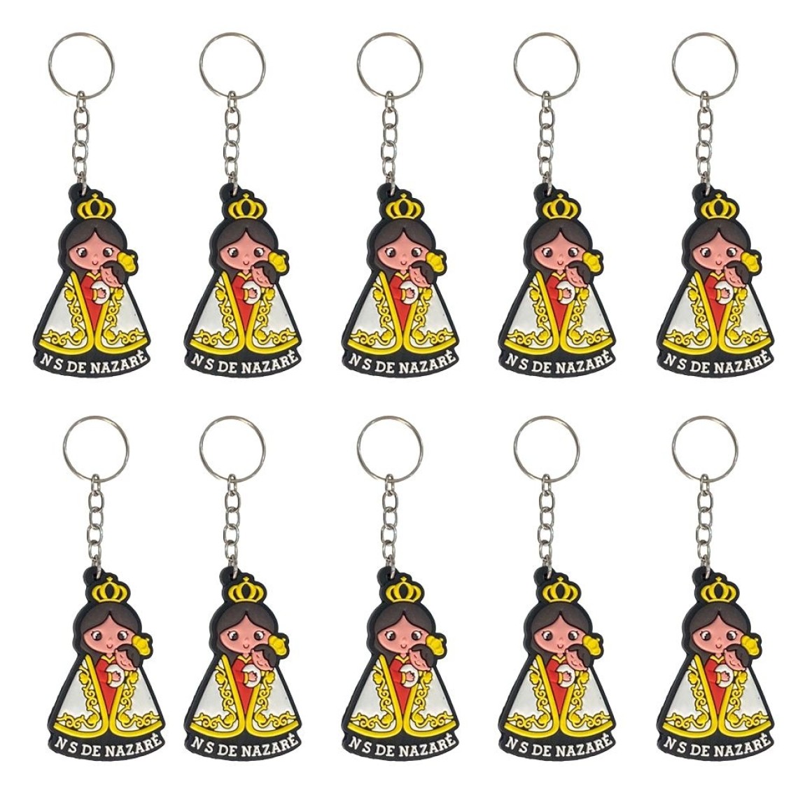 CH50010P10 - Chaveiro N. Sra. De Nazaré Emborrachado c/ 10un. - 11x3cm
