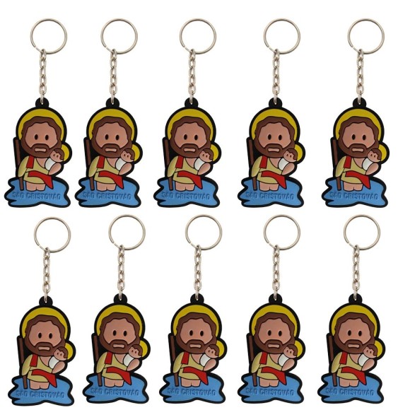 *Chaveiro São Cristovão Emborrachado c/ 10un. - 12x3,5cm.