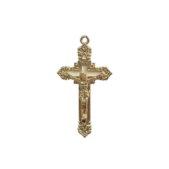 CZ861780 - Crucifixo Metal Dourado Resinado Branco - 7,6x4,1cm