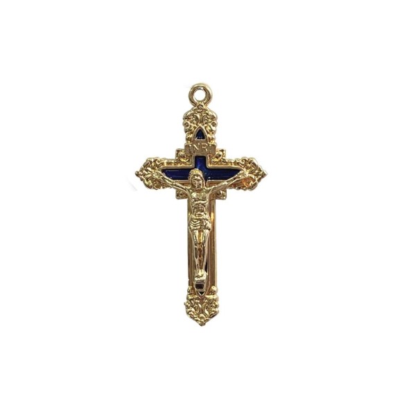 *Crucifixo Metal Dourado Resinado Azul - 7,6x4,1cm.