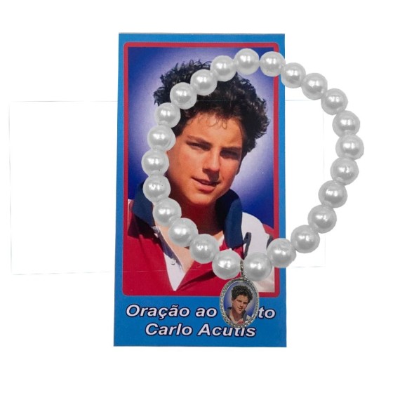 *Pulseira São Carlo Acutis Pérola Branca - 11x2cm.