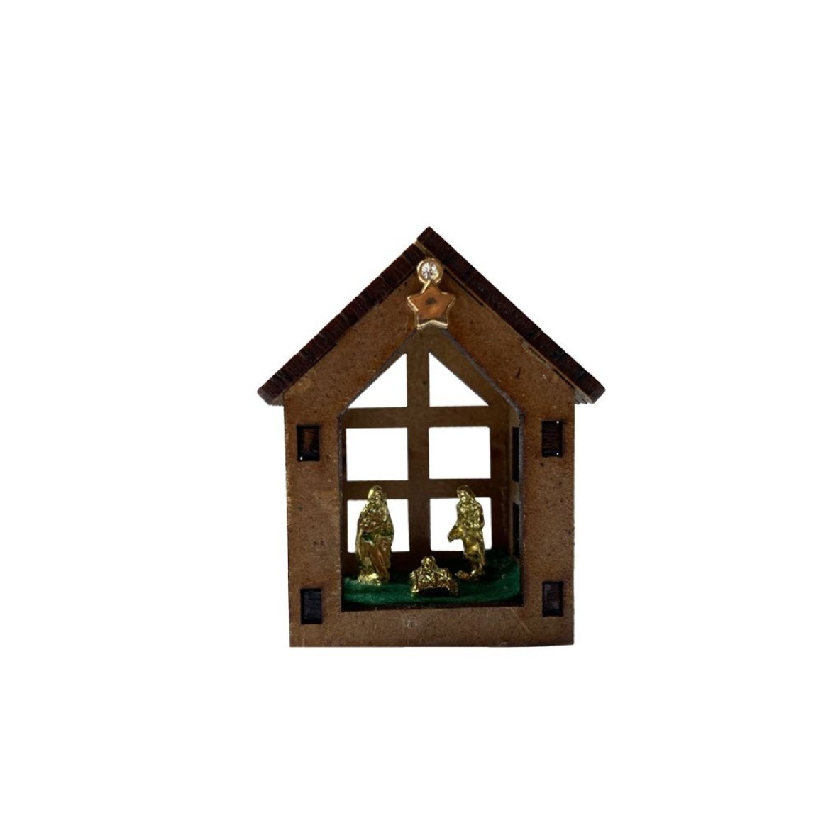 *Presépio Dourado c/ Casinha de MDF - 6x4cm.