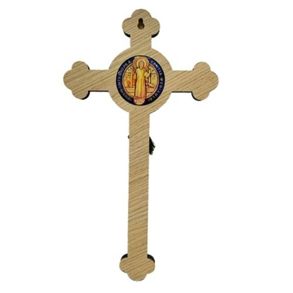 CW760360 - Crucifixo de Parede São Bento Madeira - 33x18cm (CR56)