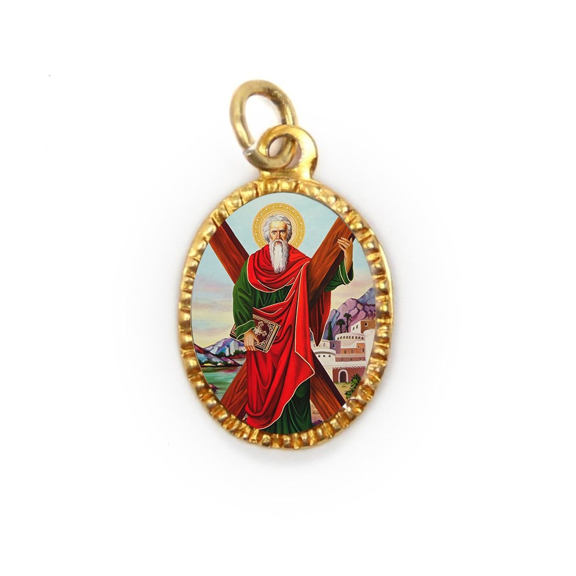 MD103350P10 - Medalha de Alumínio Oval Grande Dourada c/ 10un. Santo André - 2x1,3cm