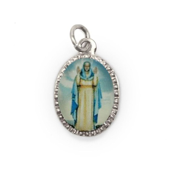 *Medalha de Alumínio Oval Grande Prata c/ 10un N. Sra. Do Equilíbrio - 2X1,3cm.
