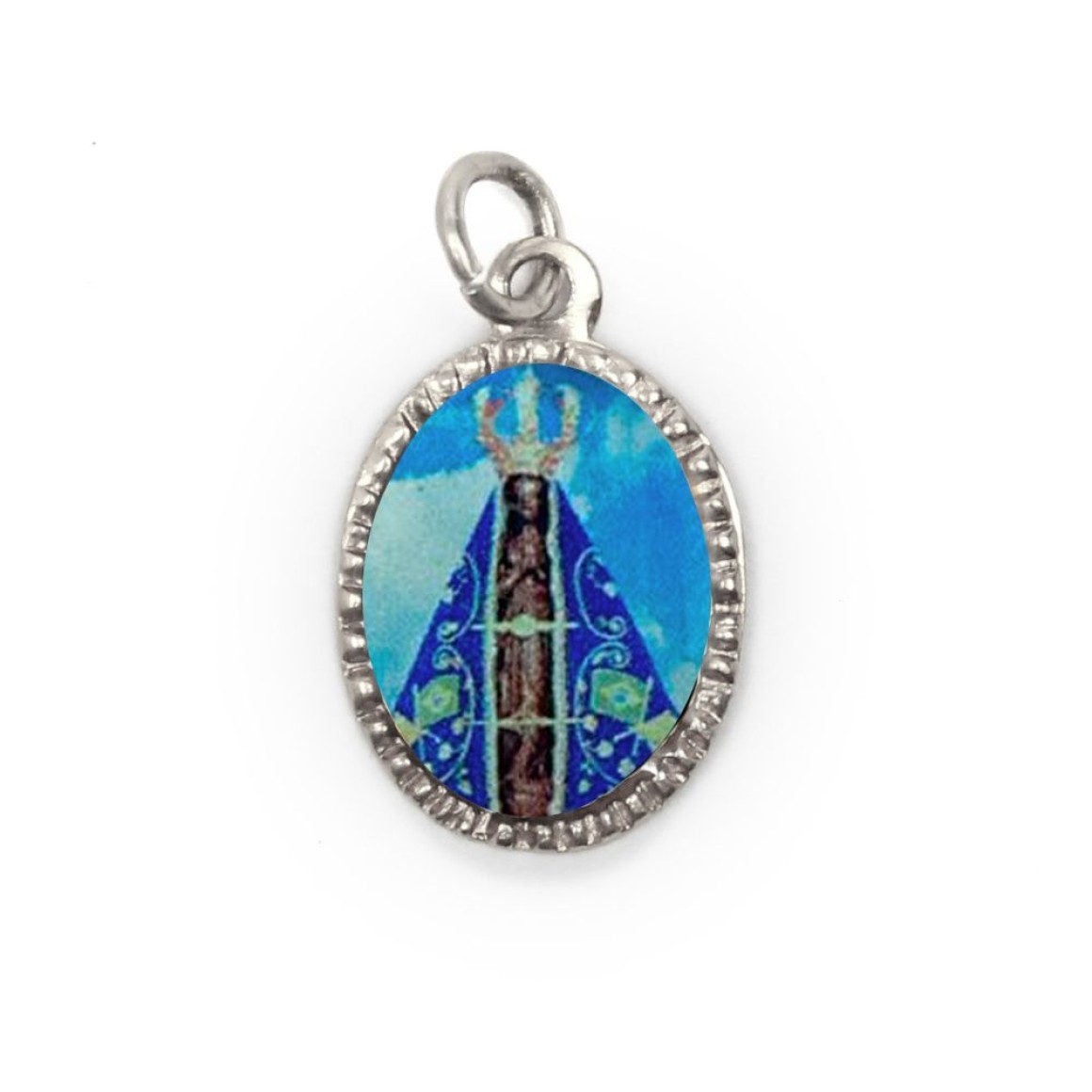 *Medalha de Alumínio Oval Prata c/ 10un. N. Sra. Aparecida - 2X1,3cm.