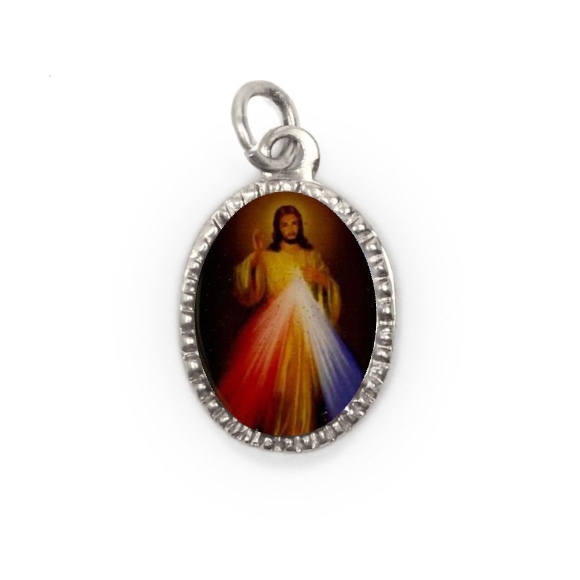 MD103805P10 - Medalha de Alumínio Oval Prata c/ 10un. Jesus Misericordioso - 2x1,3cm