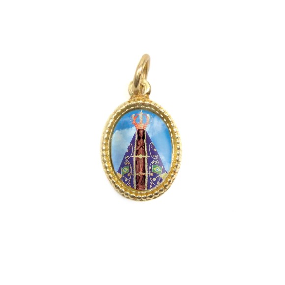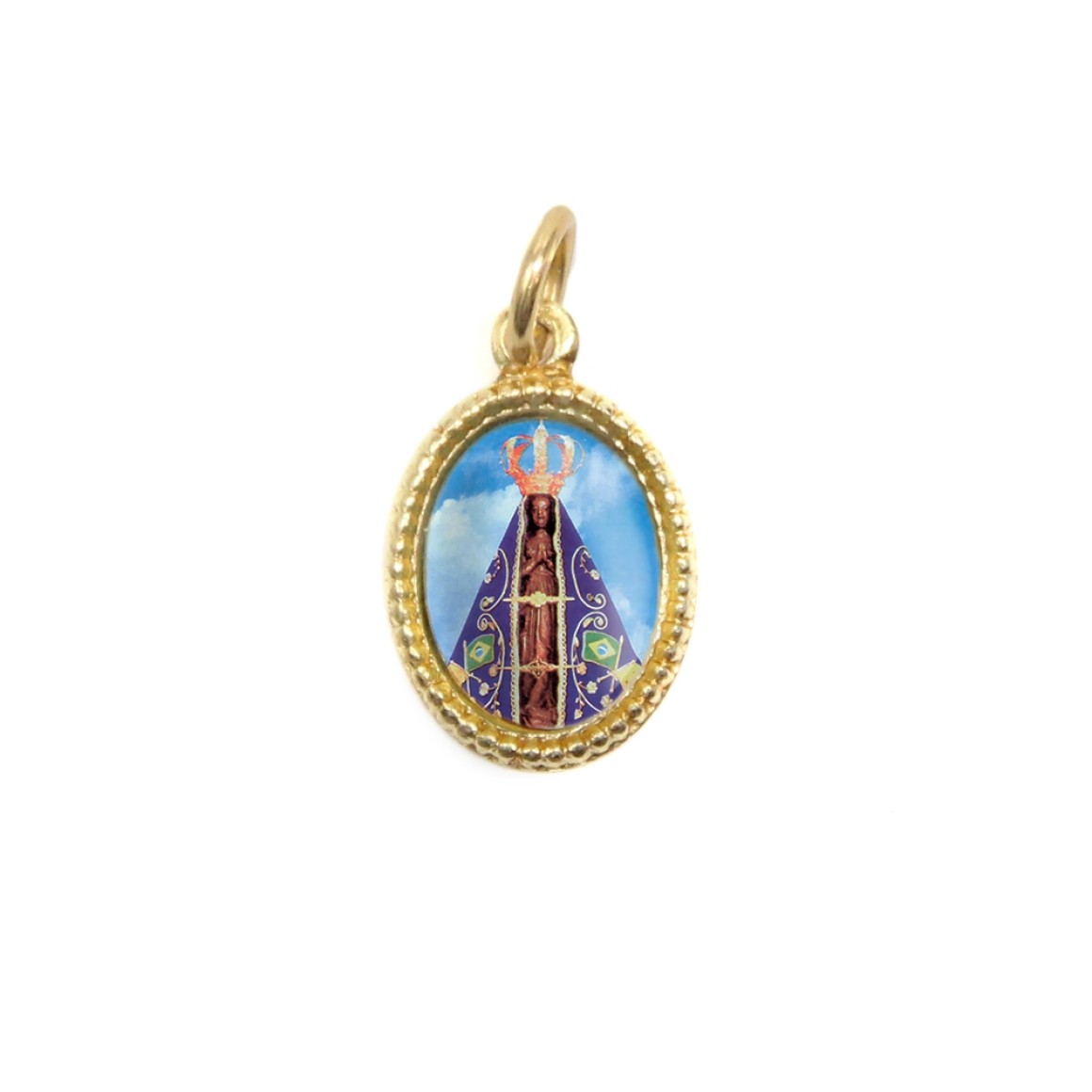 *Medalha de Alumínio Oval Dourada c/ 20un. N. Sra. Aparecida - 1,5x1cm.
