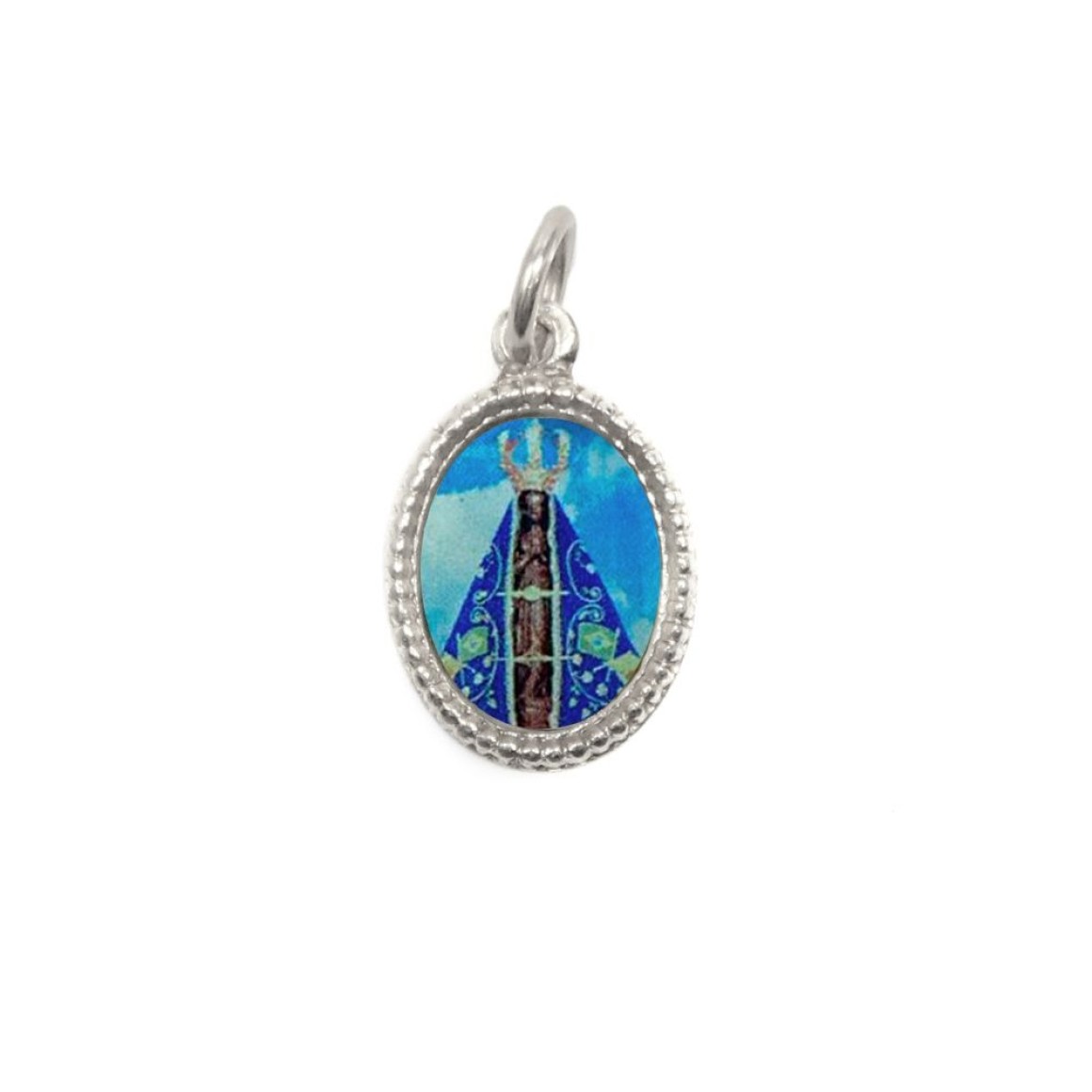 *Medalha de Alumínio Oval Prata c/ 20un. N. Sra. Aparecida - 1,5x1cm.