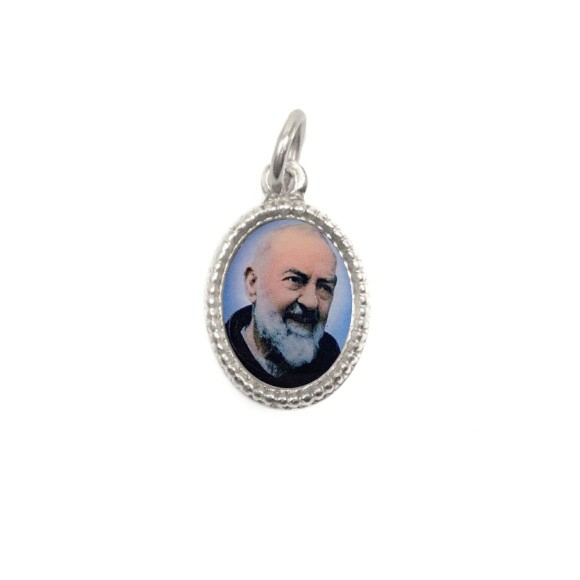 MD102501P20 - Medalha São Padre Pio de Pietrelcina Alumínio Oval Prata c/ 20un. - 1,5x1cm