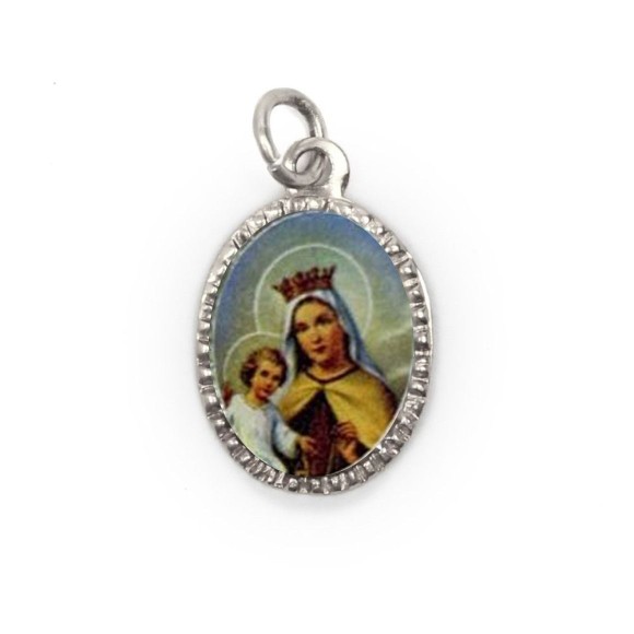 *Medalha de Alumínio Oval Prata c/ 10un. N. Sra. Do Carmo - 2x1,3cm.