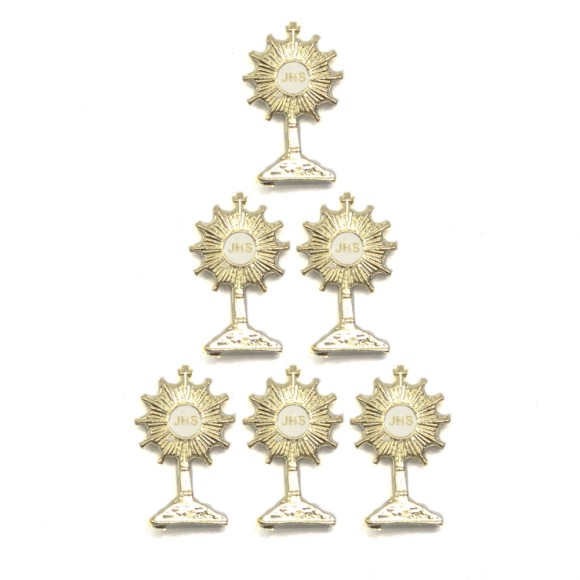 BO112001P6 - Botton Primeira Eucaristia Ostensório Dourado c/ 6un. - 2x1cm