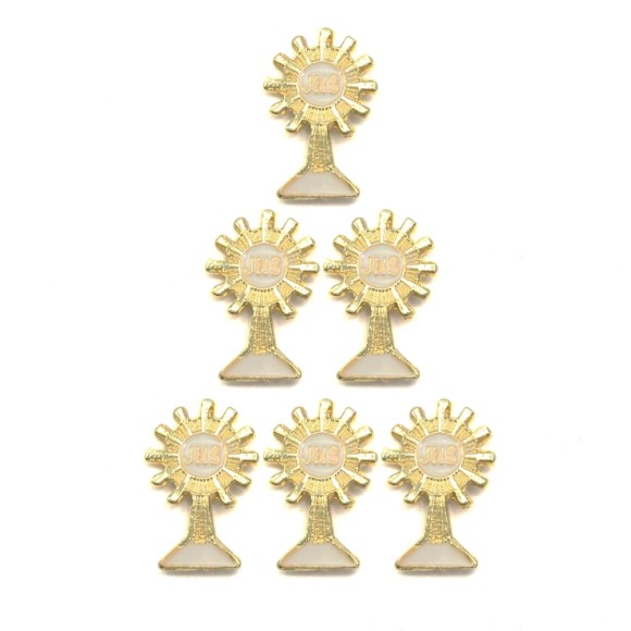 BO112002P6 - Botton Primeira Eucaristia Ostensório Dourado c/ 6un. - 2x1cm