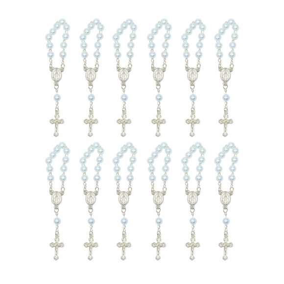 DZ1070006P12 - Dezena Pérola Azul c/12un. (Mini Terço) - 9,5x1cm
