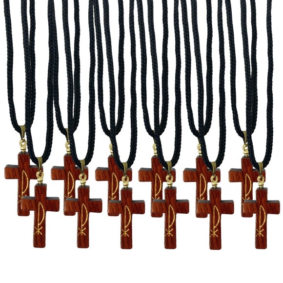 *Cordão c/ Cruz PX Madeira c/12un - 40,8cm.