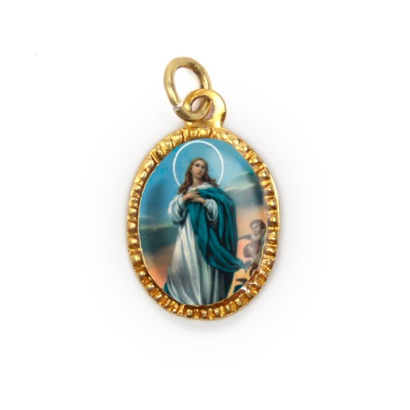 *Medalha de Alumínio Oval Dourada c/ 10un. N. Sra. Da Conceição - 2X1,3cm.
