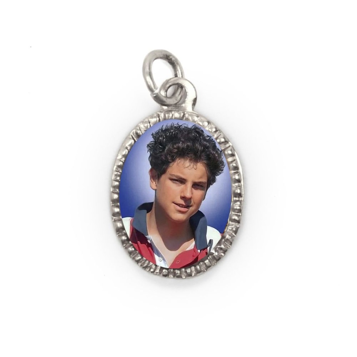 MD103851P10 - Medalha de Alumínio Oval Grande Prata c/ 10un. São Carlo Acutis - 2x1,3cm