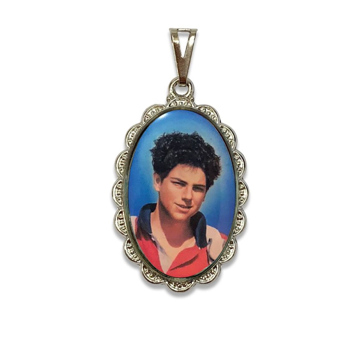 MD128465 - Medalha São Carlo Acutis Rendada Níquel - 4x2,5cm