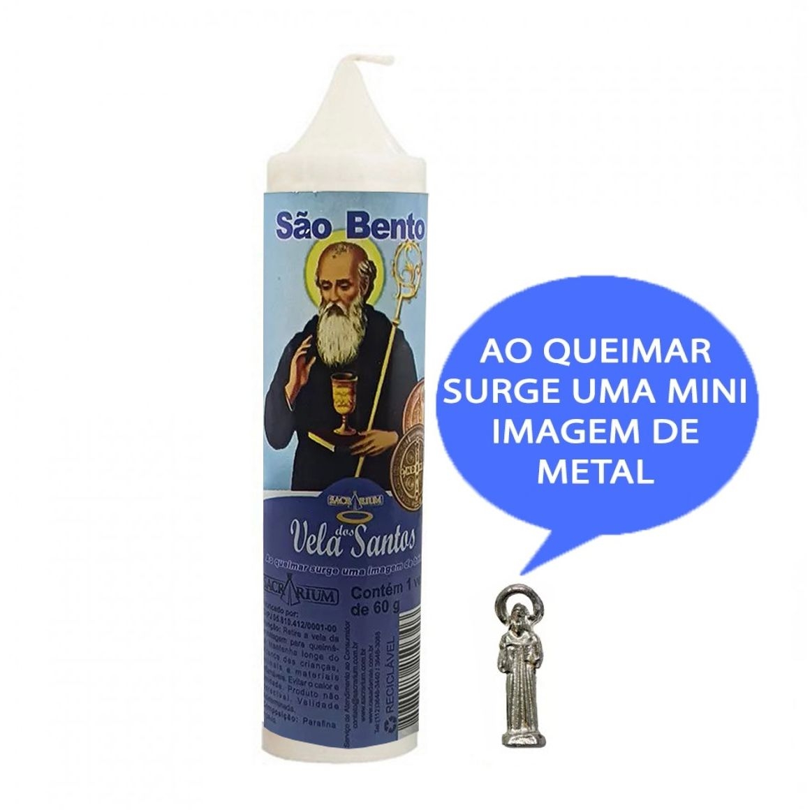 VE155126 - Vela São Bento c/ Santo de Bolso 14x3cm
