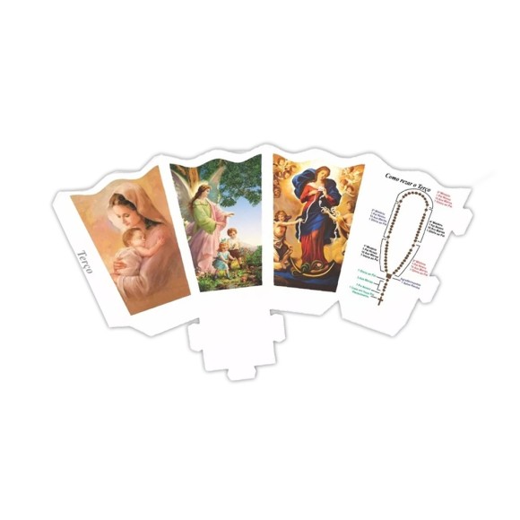 PE178102P12 - Protetor de Vela Como Rezar o Terço c/ 12un. - 20x8cm