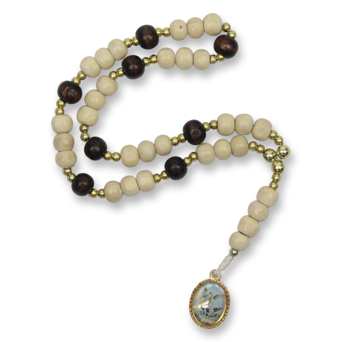TE330010 - Terço São Miguel Arcanjo Madeira Marfim - 27cm
