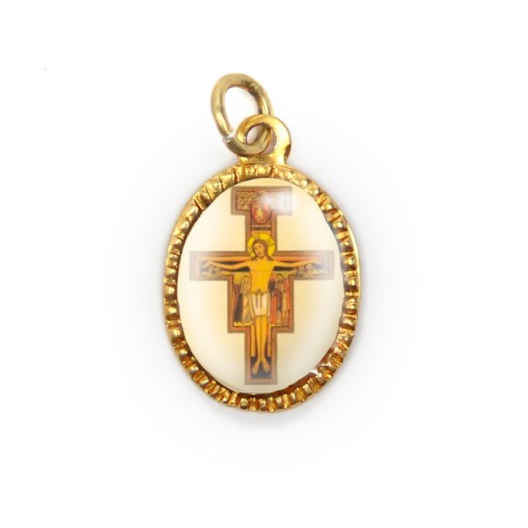 MD103277P10 - Medalha de Alumínio Cruz de São Damião Oval Dourada c/ 10un. - 2X1,3cm